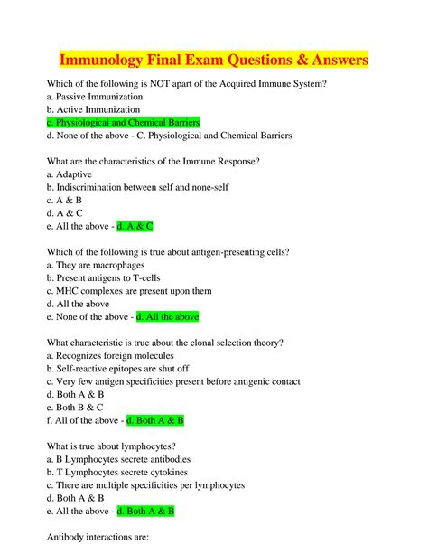 Download College Immunology Test Questions And Answers Reader
