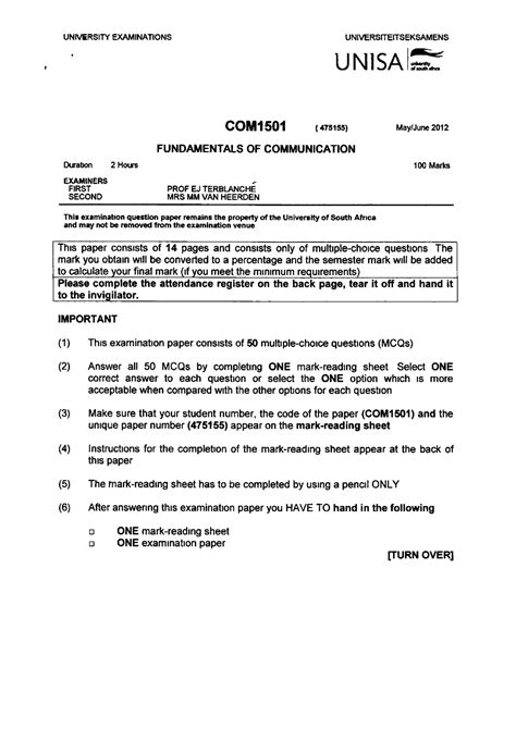 Read Online Past Unisa Exam Papers With Answers Reader